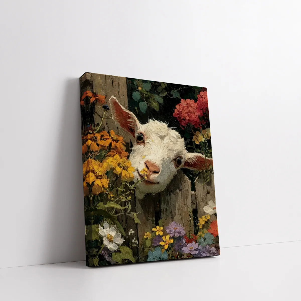 Baby Goat Peeking Through Flowers Paint By Numbers For Adults
