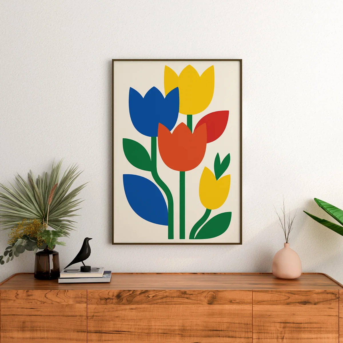 Bauhaus Tulips Poster, Minimalist Wall Art