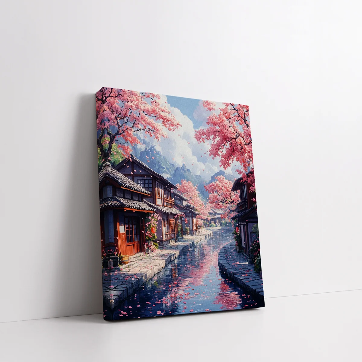Cherry Blossom Canal Village Paint By Numbers For Adults