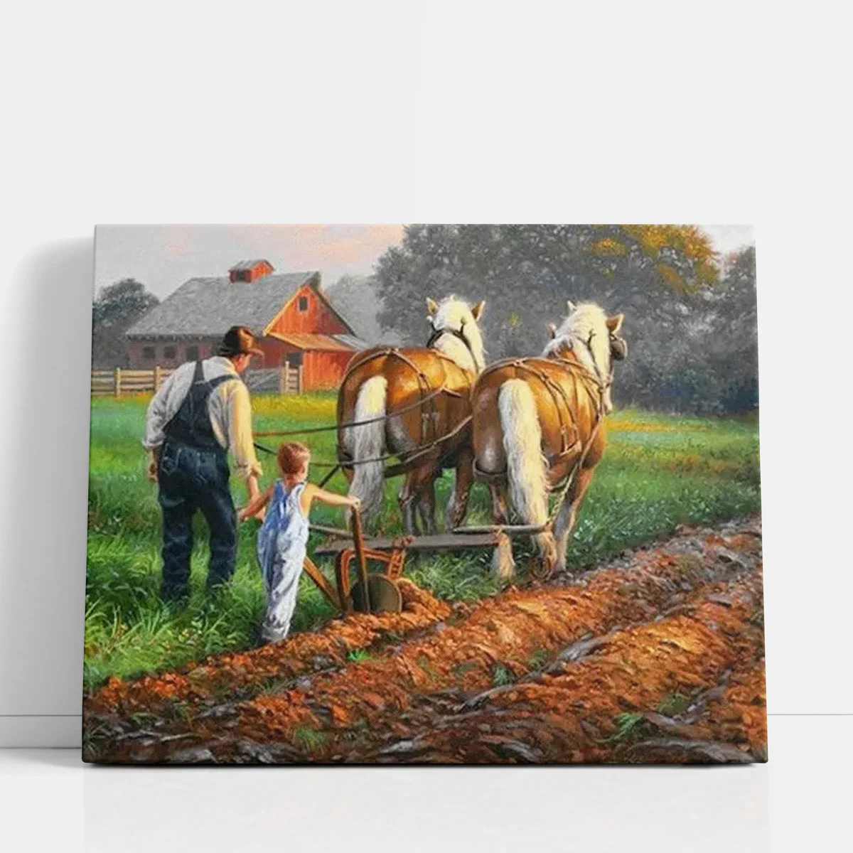 Farmer and Child Plowing the Field Paint By Numbers For Adults