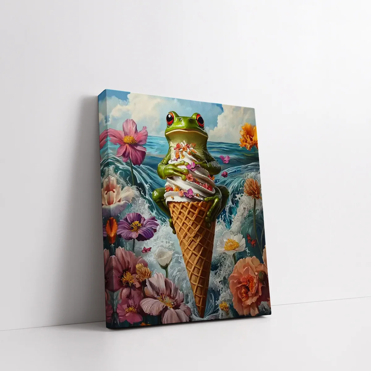 Frog on Ice Cream Cone with Flowers & Waves Paint By Numbers For Adults