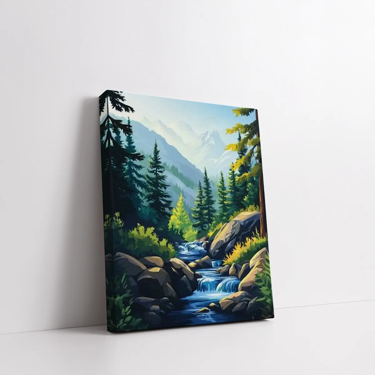 Mountain Stream in Pine Forest Paint By Numbers For Adults