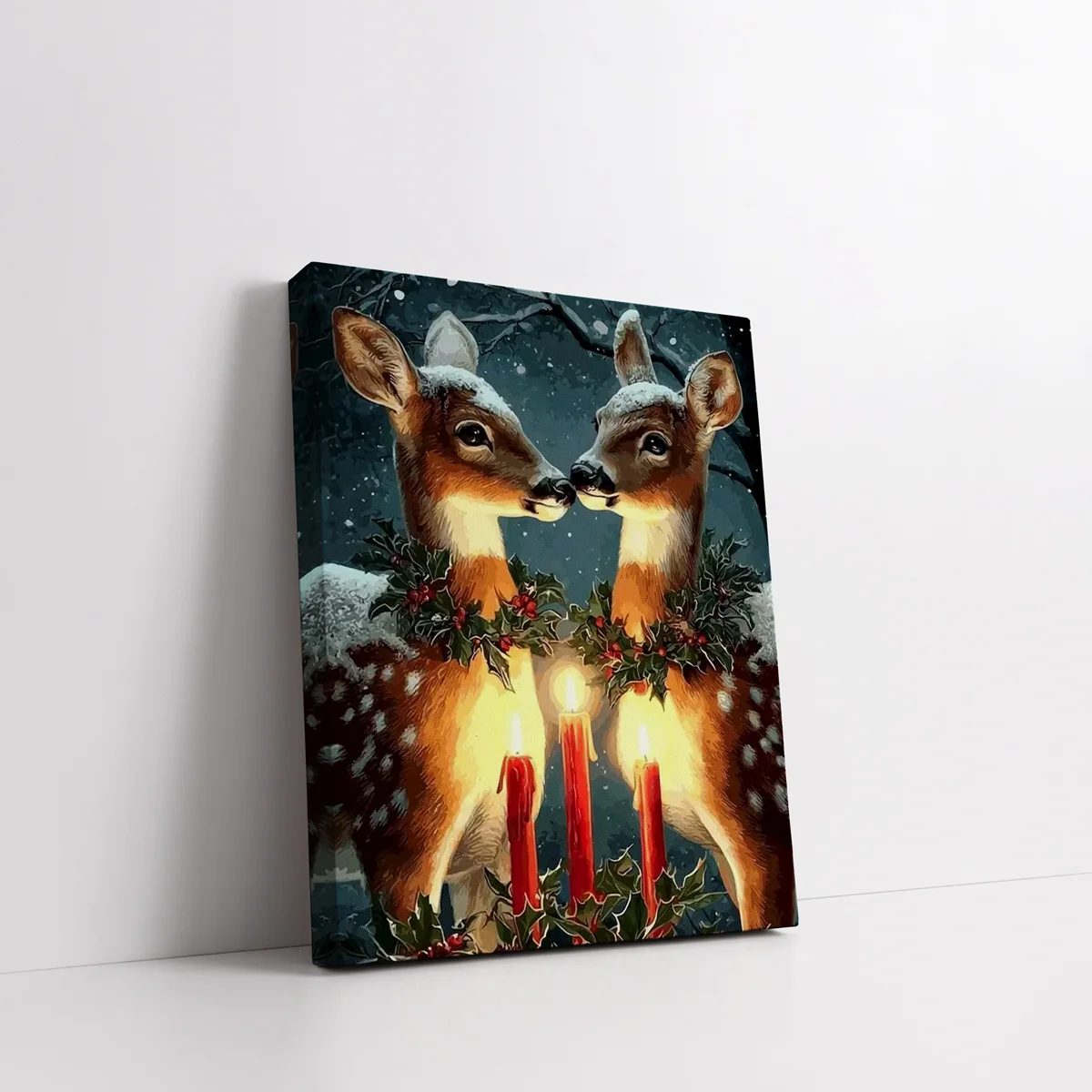 Twin Deer with Candles, Christmas Paint By Numbers For Adults